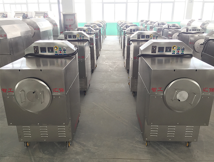 三相电最小型的一款电磁加热炒花生机器 一锅可炒制花生果14斤,炒制花生米一锅30斤左右 电磁加热节能环保 自动控温 自动化炒制的新型炒花生机器