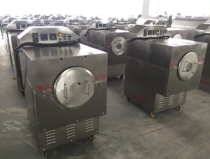全自动炒货机无需人工看管 只需设置好炒制温度 炒熟自动警报只需一键出锅 无需炒货经验 三分钟上手 操作简单智能化程度高 该机是智工汇保三相电最小的全自动炒货机